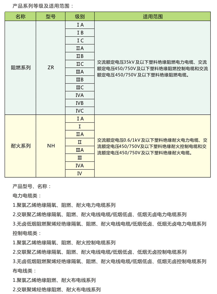 二、使用范圍    本產品適用的電氣線路主要為:主動力傳輸,消防系統,計算機房控制線路。