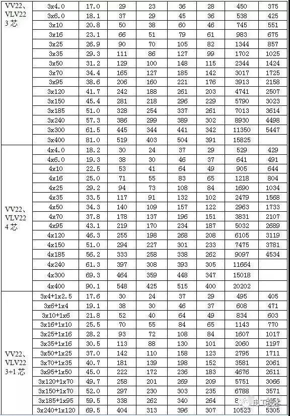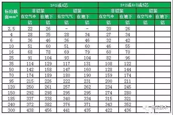 常見鋁芯電纜0.6/1kv-1.8/3kv電纜載流量表