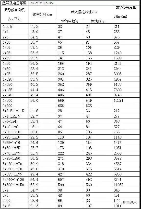 表中計算值為銅芯載流量。鋁芯載流量為銅芯的1/1.29倍